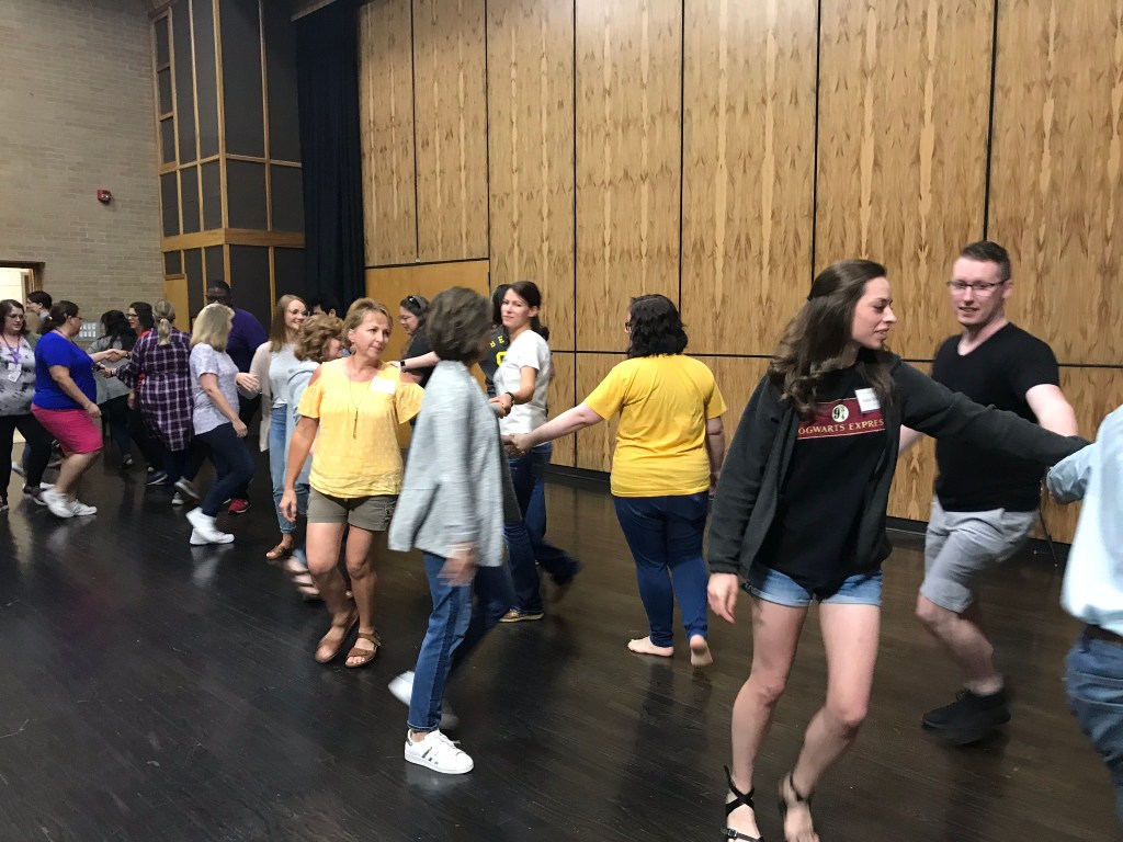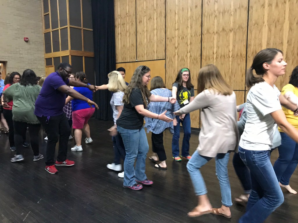 Our final project was to teach the class an activity to go along with the curriculum. For First Steps, I taught a small lesson on Arioso with puppets to the other teachers. For Conversational Solfege (CS), I created a dance to go with the round Ghost of John and taught this dance to the teachers. This dance goes along with Unit 7 of CS. Chris was amazingly encouraging during this process and treated everyone with respect. She truly wanted to help us hone our crafts and she was not intimidating in the least! Here is the video of The Ghost of John! You can see me in the middle as the conductor. I’m very proud of how this turned out, as it’s beautiful to listen to and watch!